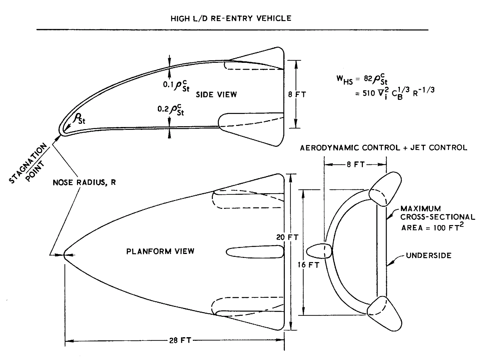During reentry, the hottest part of the vehicle would be its small pointed nose, which Aeronutronic expected would be actively cooled to prevent melting. A blowtorch-like plume of superheated plasma would trail from the nose beneath the lifting-body, but would not contact its concave underside.